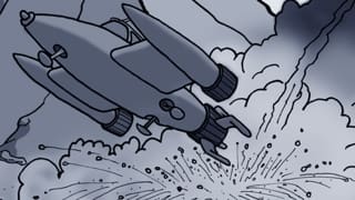 Defender Zik's damaged ship careens through the atmosphere!