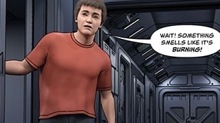 Trent Quickdraw gets ready for his shift on the bridge when he smells smoke.