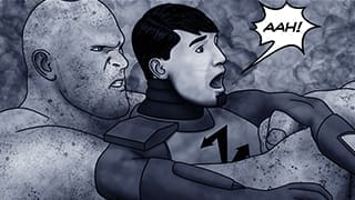 Bear Hug Defender Zik gets caught by the giant Clonoid, who lifts a boulder to crush him! 2018-01-16 by Vic 0