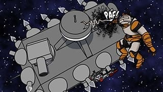 Tanaka ejects from his destroyed fighter and lands on the top of the Kodiak's bridge.