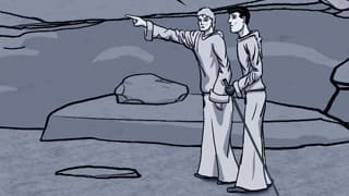 Defender Zik and Trent hike through the desert wastes of Prison Planet.